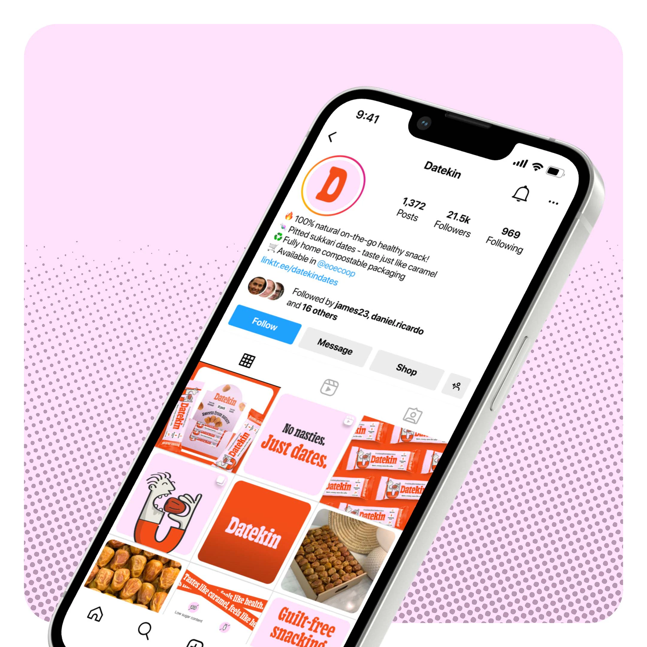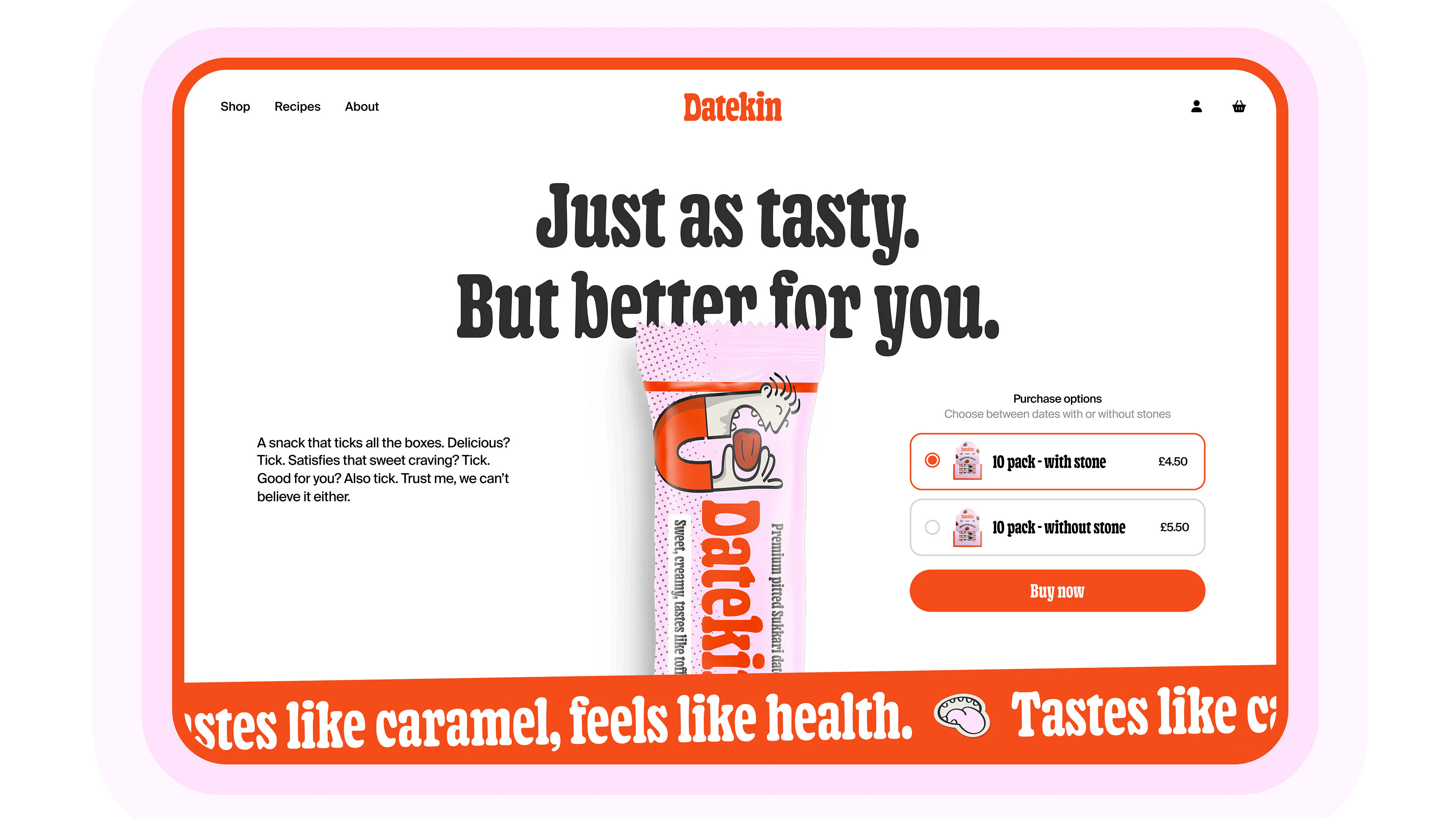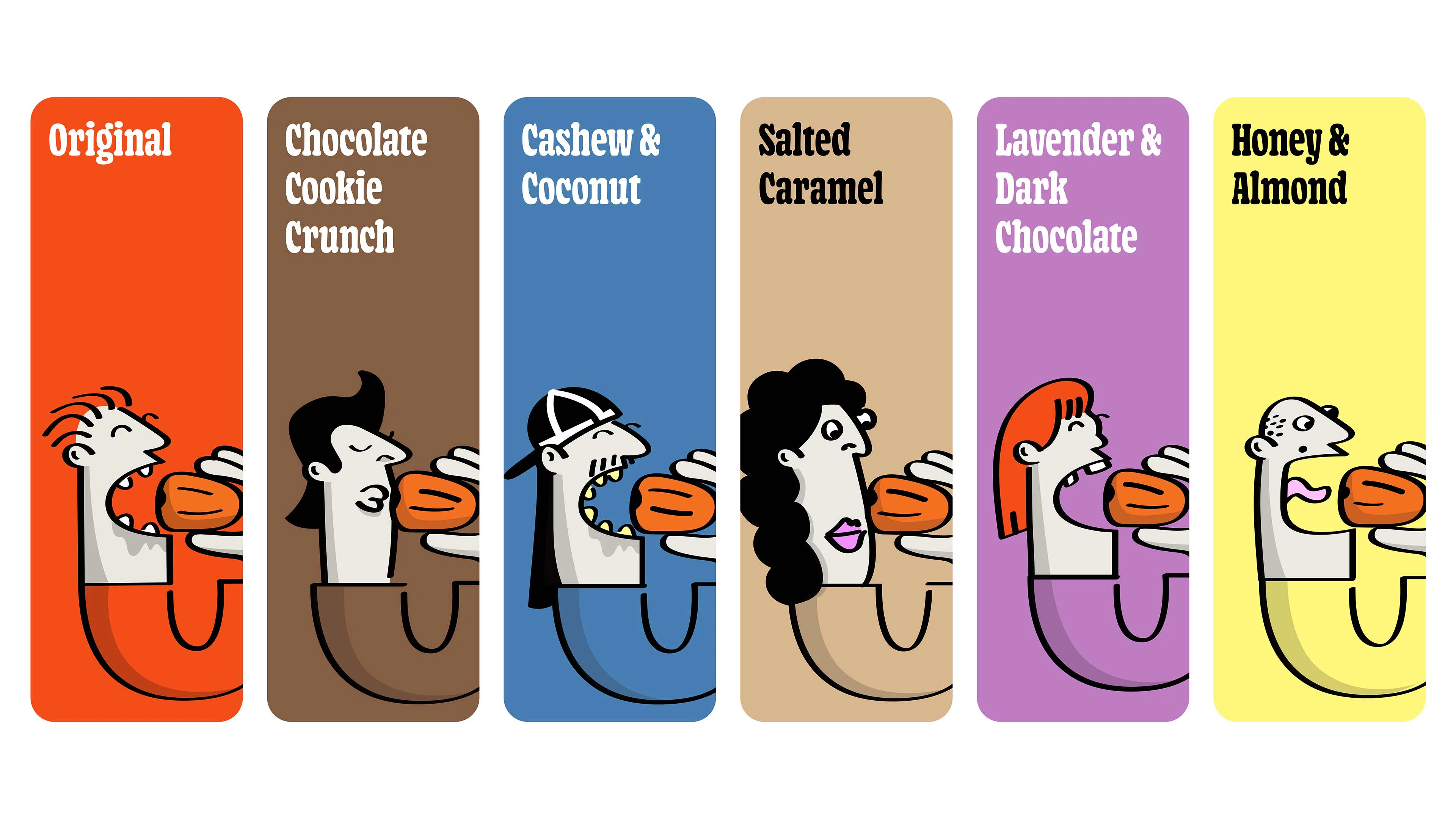 To bring this to life, we crafted a brand that feels as joyful and unpretentious as the product itself. The name “Datekin” is warm, friendly and a little cheeky - and the visual identity follows suit. Think playful nostalgia, candy-shop energy and tiny illustrated characters celebrating the magic of a really good date. Colour pops, charming packaging details and intuitive messaging make the experience feel fun, inviting and refreshingly straightforward. Every touchpoint leans into the idea that snacking shouldn’t require decoding - it should feel natural, vibrant and honestly delicious.