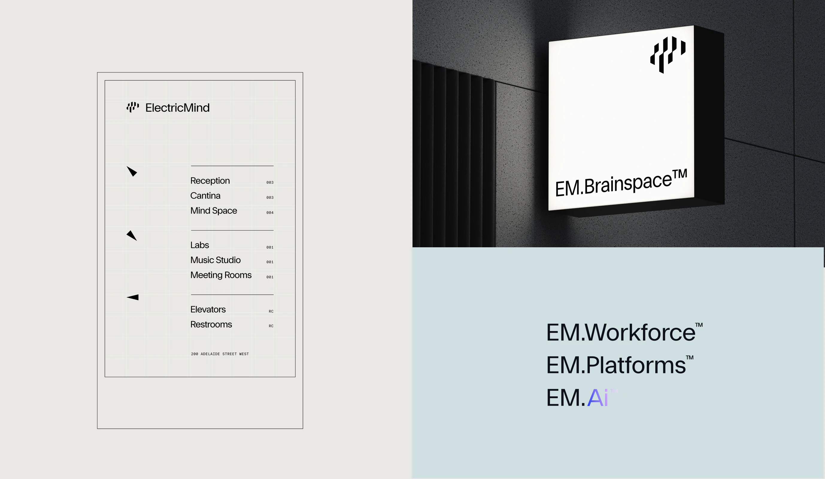 Creatively, the identity brings this duality to life through the visual and kinetic language of electrical and neural pathways. The name Electric Mind serves as a statement of intent, capturing a sense of constant movement, connection and intellectual energy. The visual universe reflects this through dynamic, synapse-inspired forms, typography that balances clarity with character, and a voice that speaks with confidence and momentum.